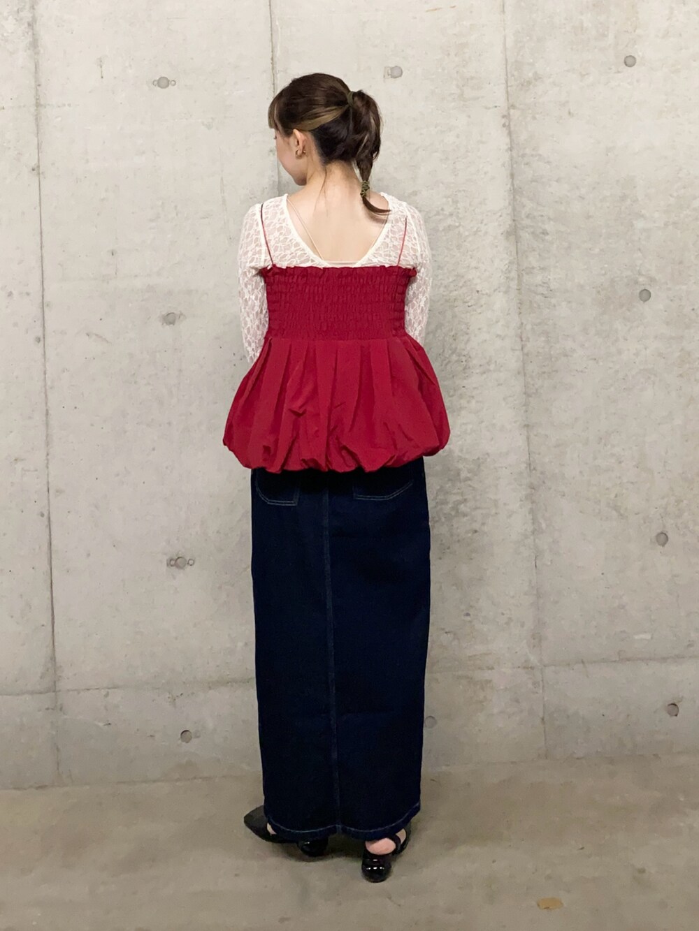 ワンウォッシュカラー×レッドはいつの時代も秋冬最強の組み合わせです🥰