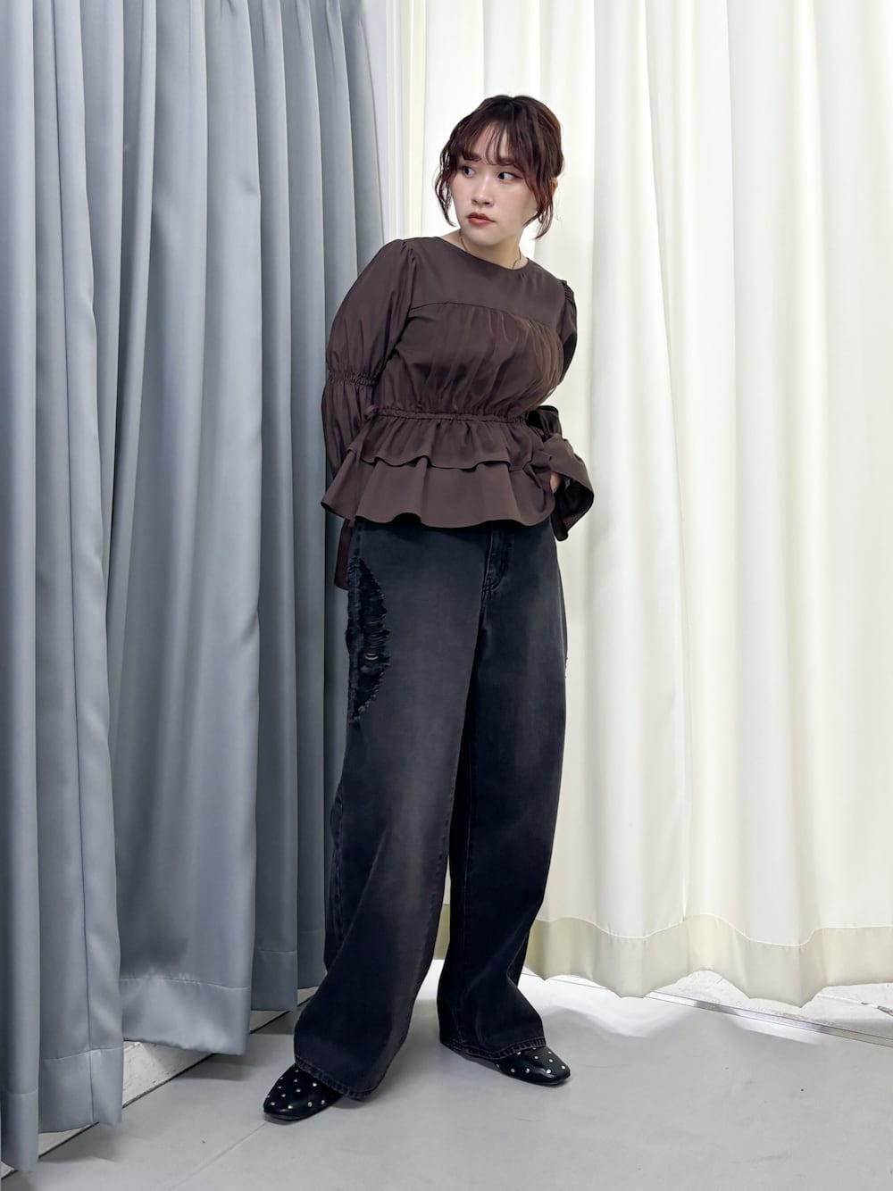 袖のボリュームデザインが女性らしさをアップしてくれます^^