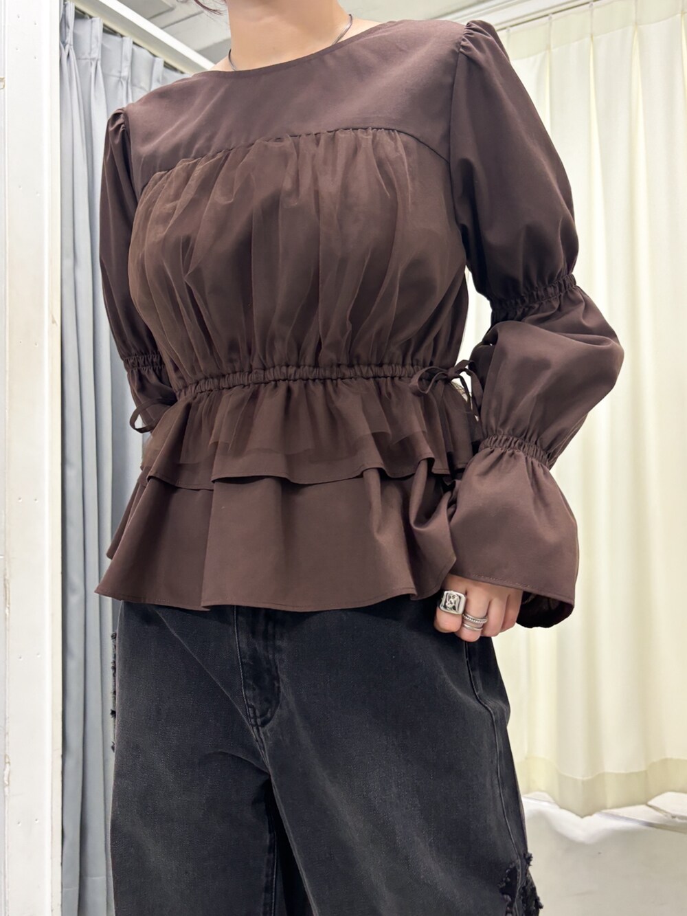 チュールドッキングデザインが可愛いブラウス〇