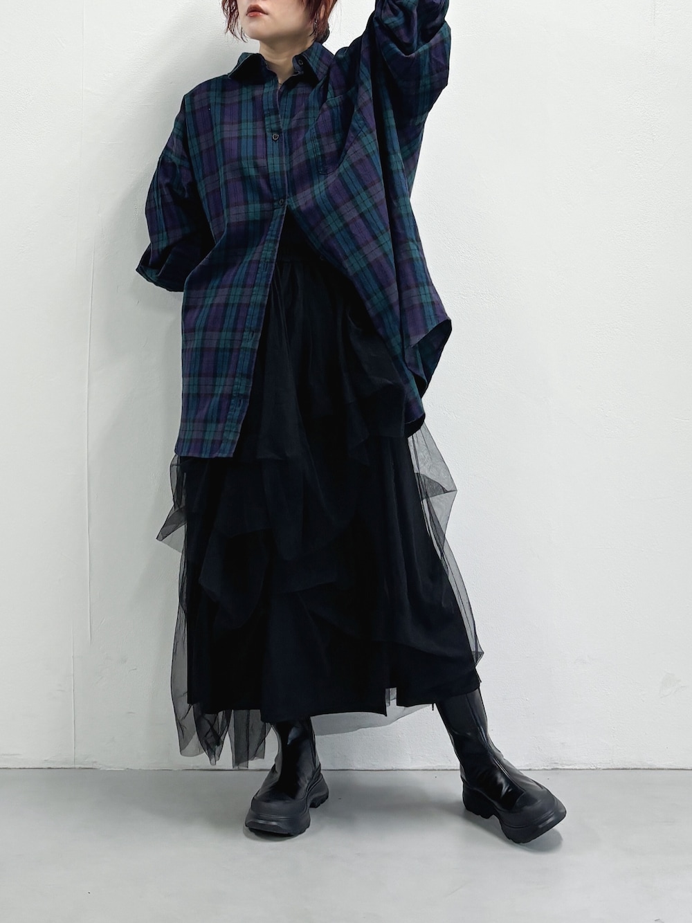チュールスカートと合わせてだぼっと着てみました~~