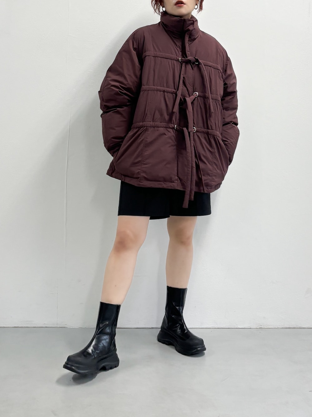 ウエストシェイプできるのが魅力!中綿ジャケット特有の着ぶくれ感をなくすことができます〇