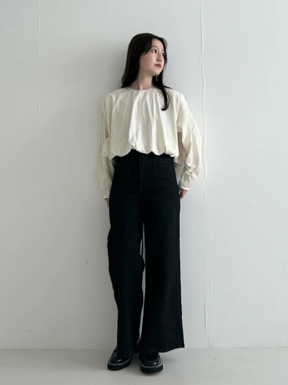 クロップド丈のバルーンブラウスは、裾のドローコードでボリューム感の調節ができます。