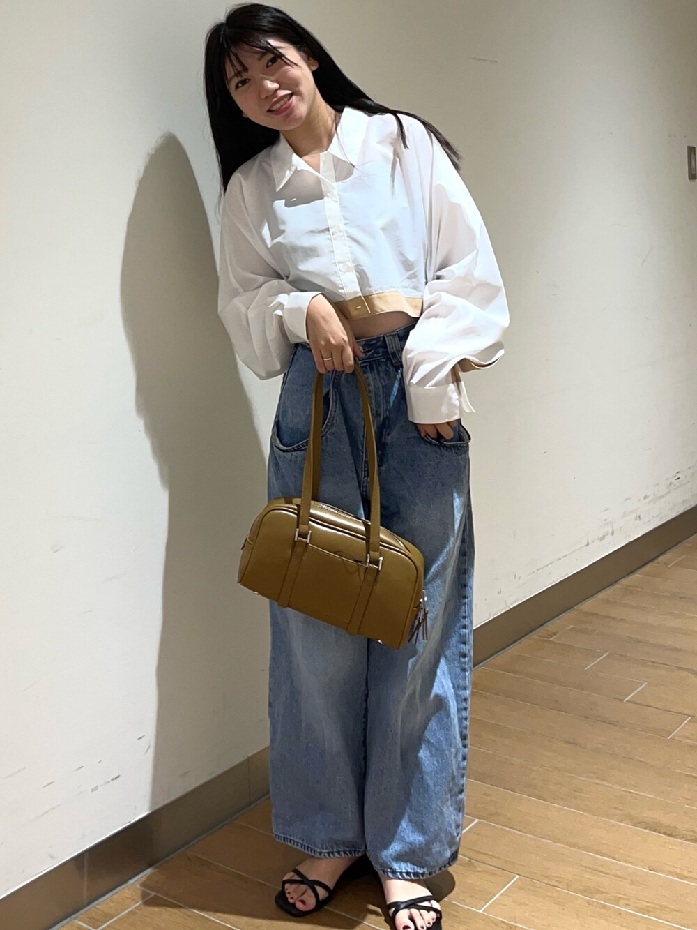 シャツはバイカラーになっていてとてもかわいいです🌱丈感も短めでパンツとの相性🫶🏼