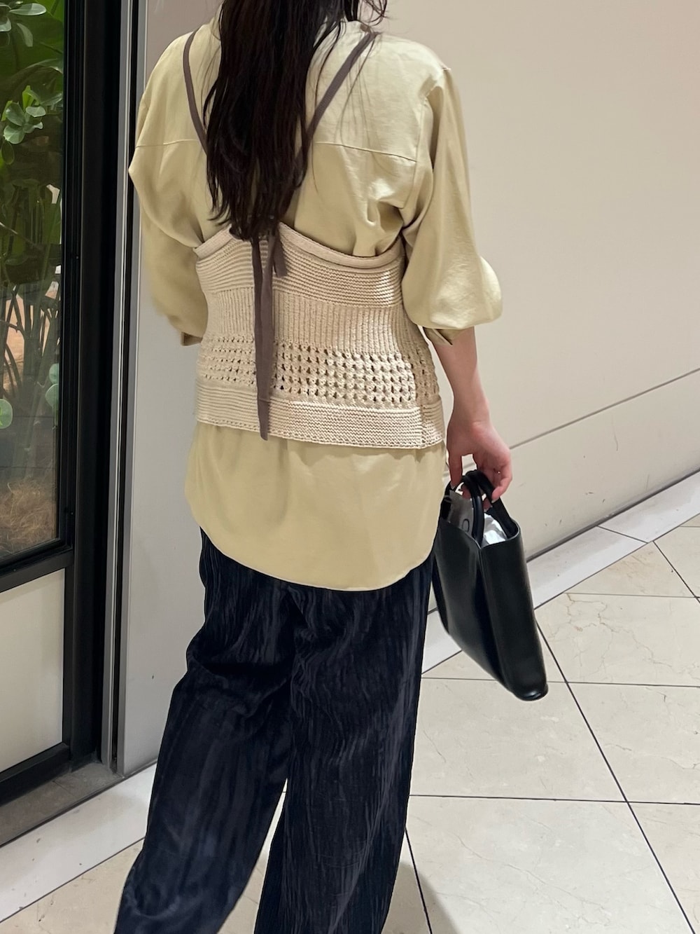 シンプル過ぎないよう、キャミソールをレイヤードしてデザインをプラス◎