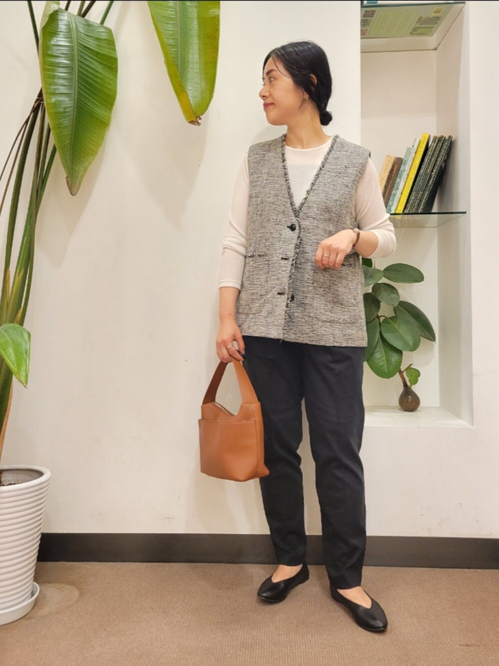 ツイードにフリンジが雰囲気でますし