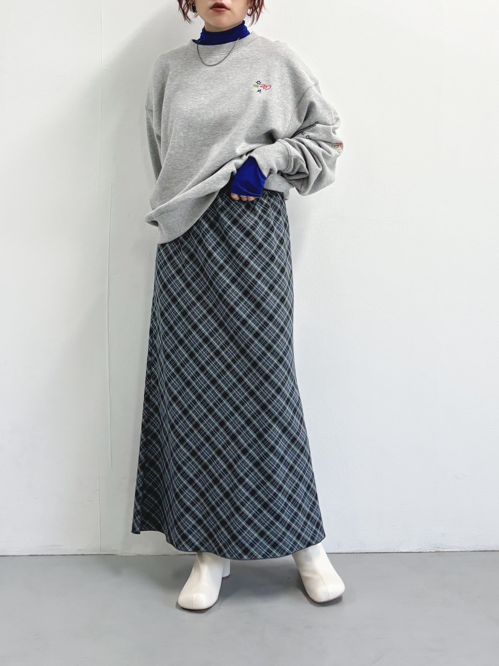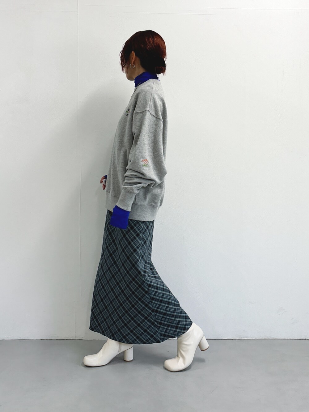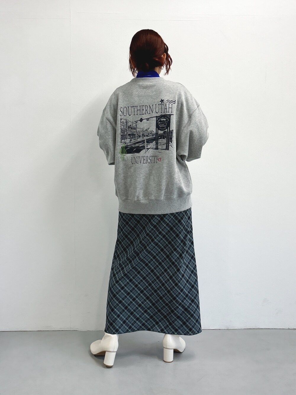 チェックのスカートと合わせてトレンド感のあるコーデに~~
