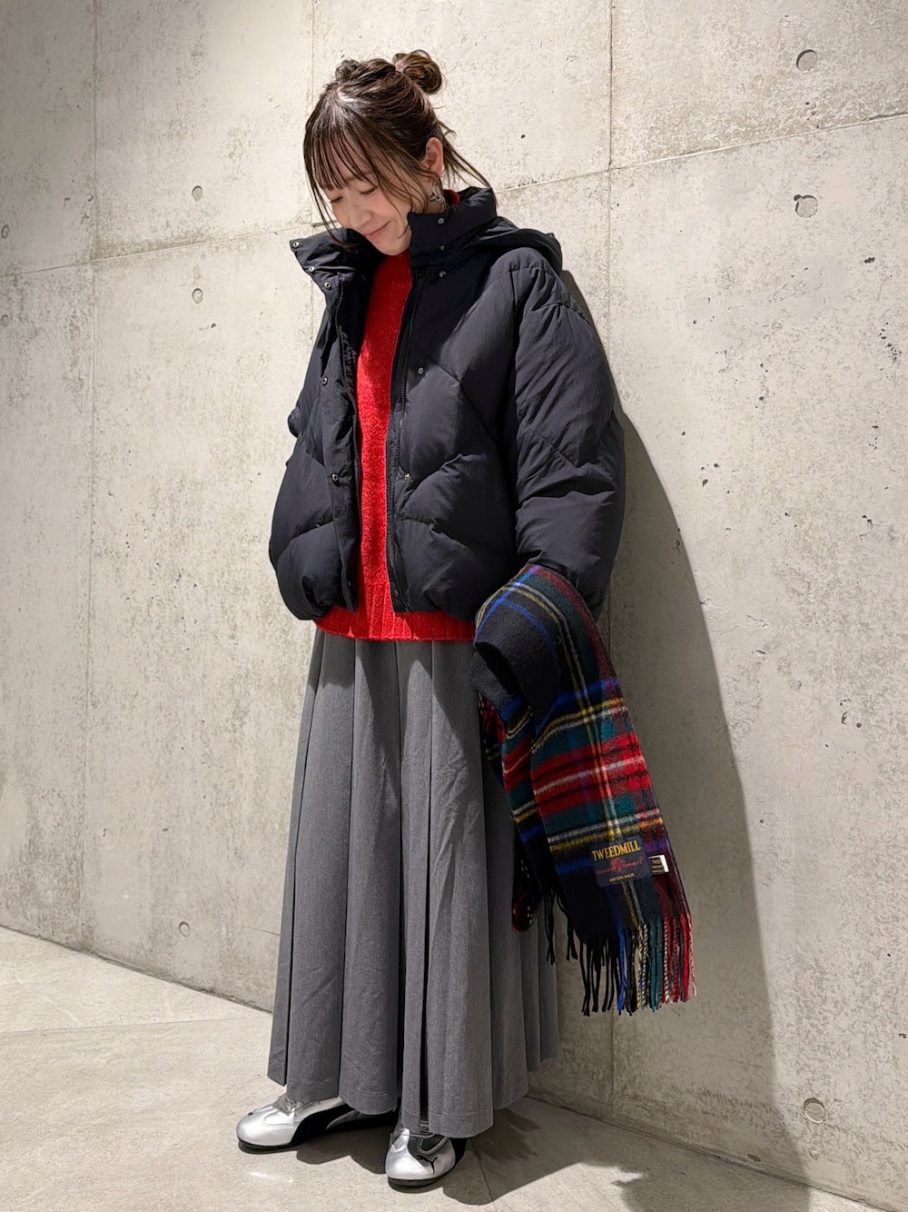 今回は、女性らしいマーメイドシルエットのスカートを合わせた、大人カジュアルコーディネートです。