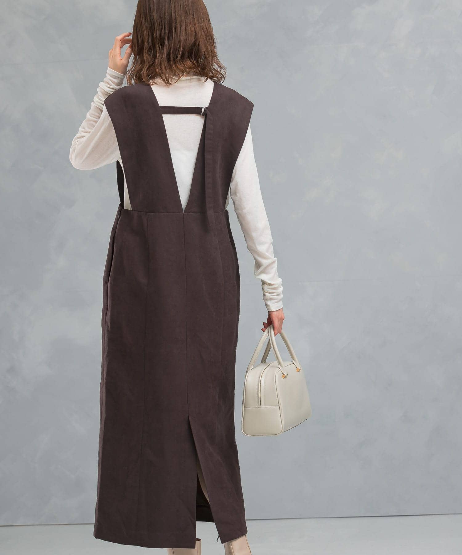 バックデザインがポイントのジャンパーワンピースを着用しました♪