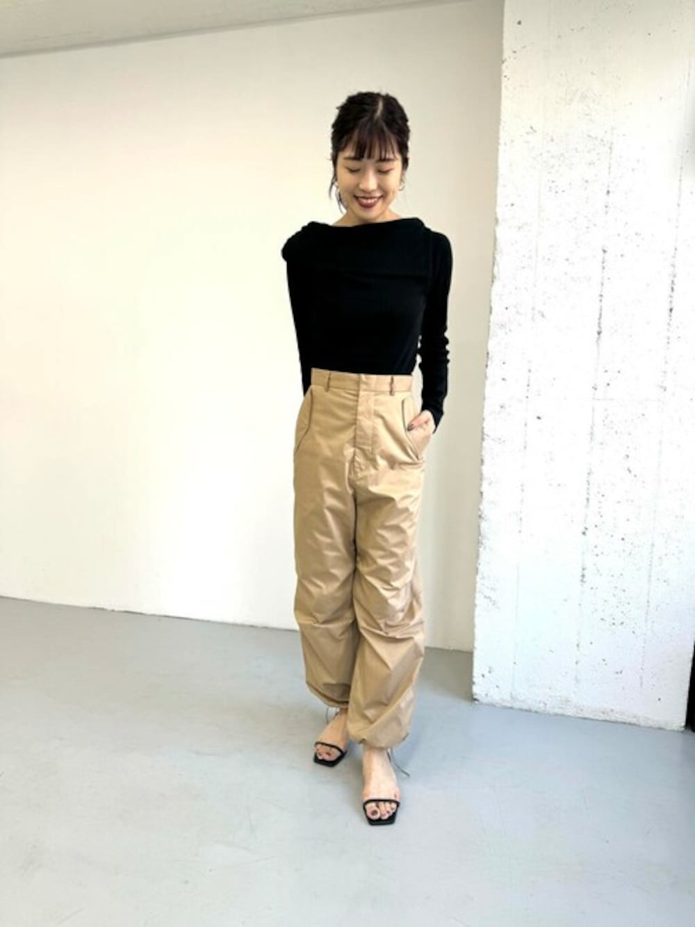 トレンドライクなパラシュートパンツと合わせて、OFFの休日にしたい