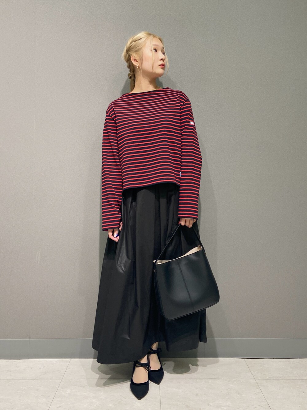トップスはしっかりとした生地感で丈も長すぎないので広がりのあるスカートや、パンツとも合わせやすいです!