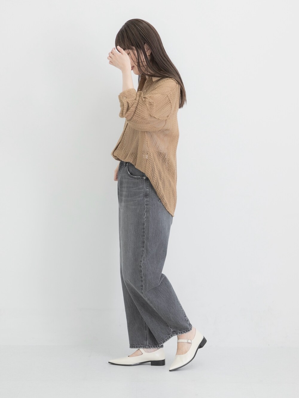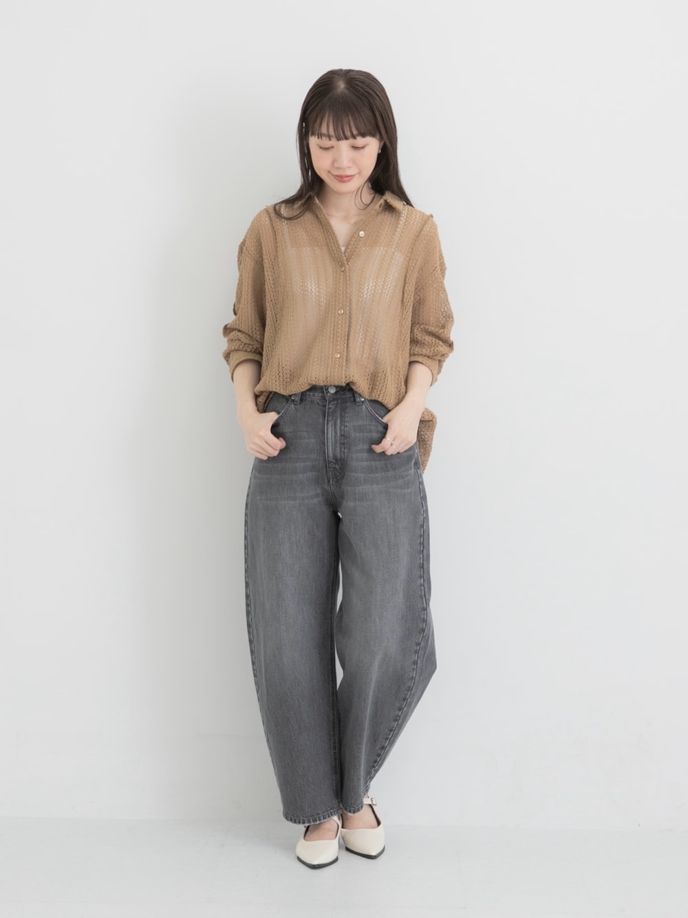 ブラックデニム×ベージュのレースシャツで秋カラーコーデ🍂