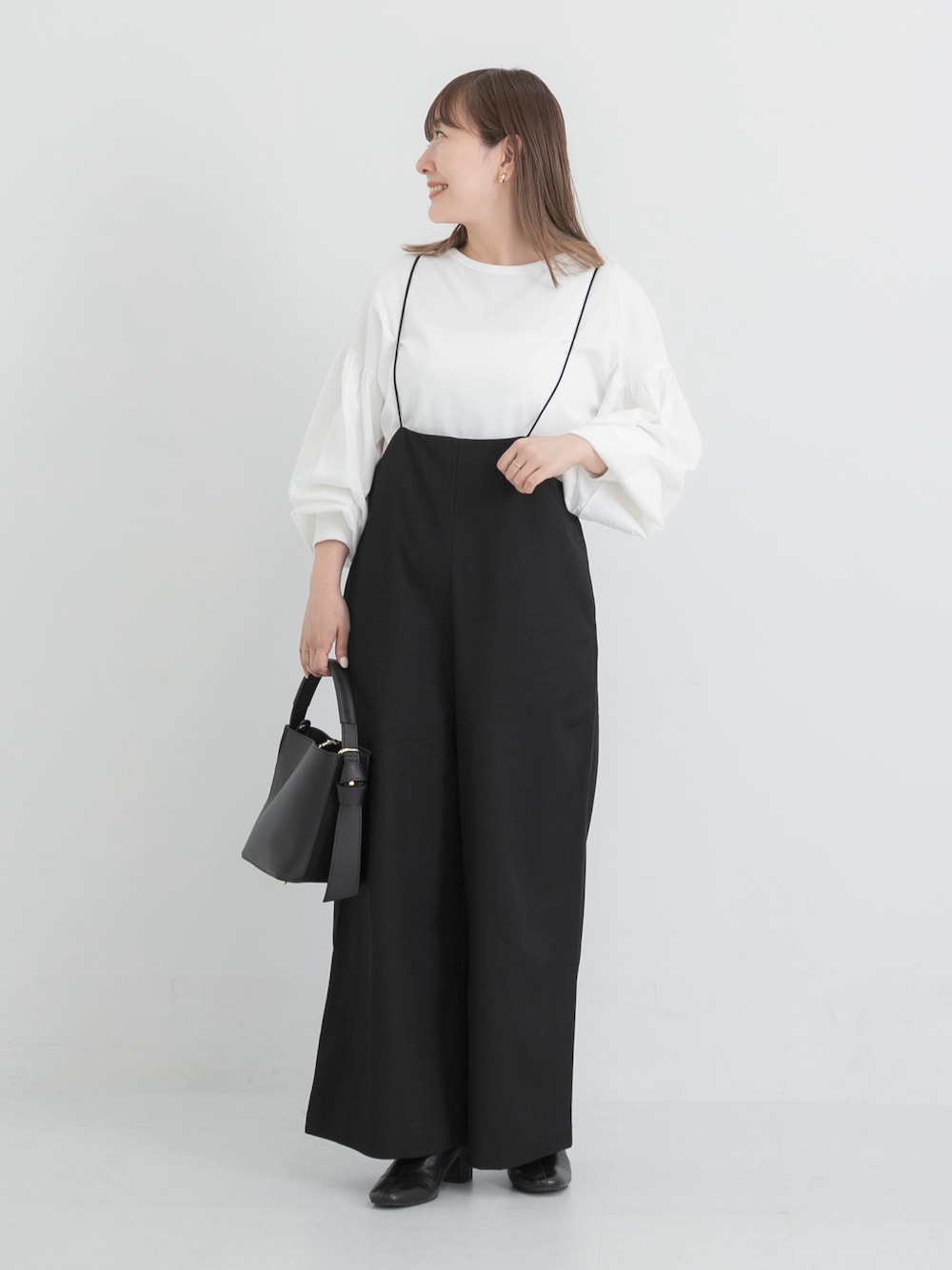サロペットは紐が華奢なので、カジュアル感が薄く