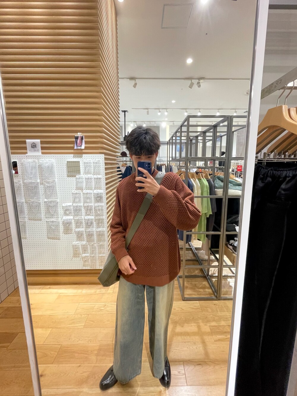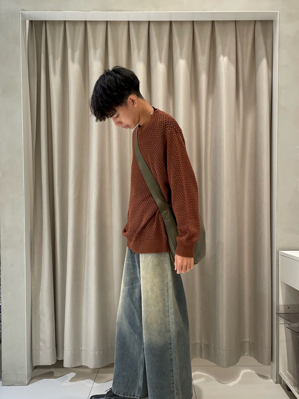 メッシュのニットとヴィンテージ感のきいたワイドデニムの相性が最高でした!