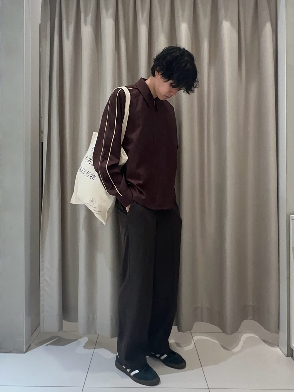 短丈のシャツにワイドすぎないスラックスを合わせることでこなれ感が出せます。ブラウンの主流にした同系色のコーデから秋感を出すこともできます!