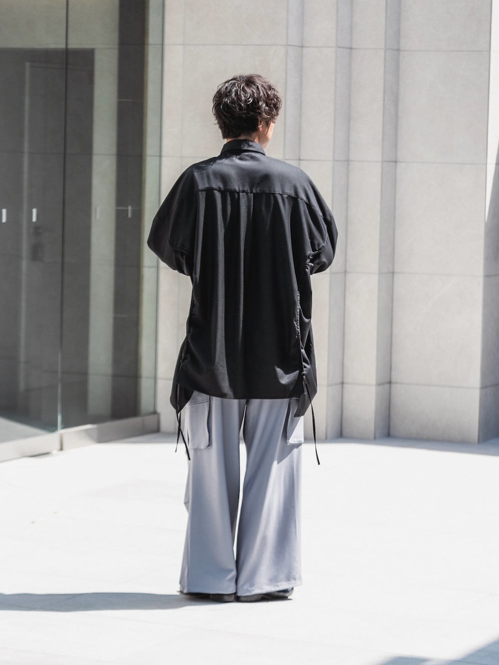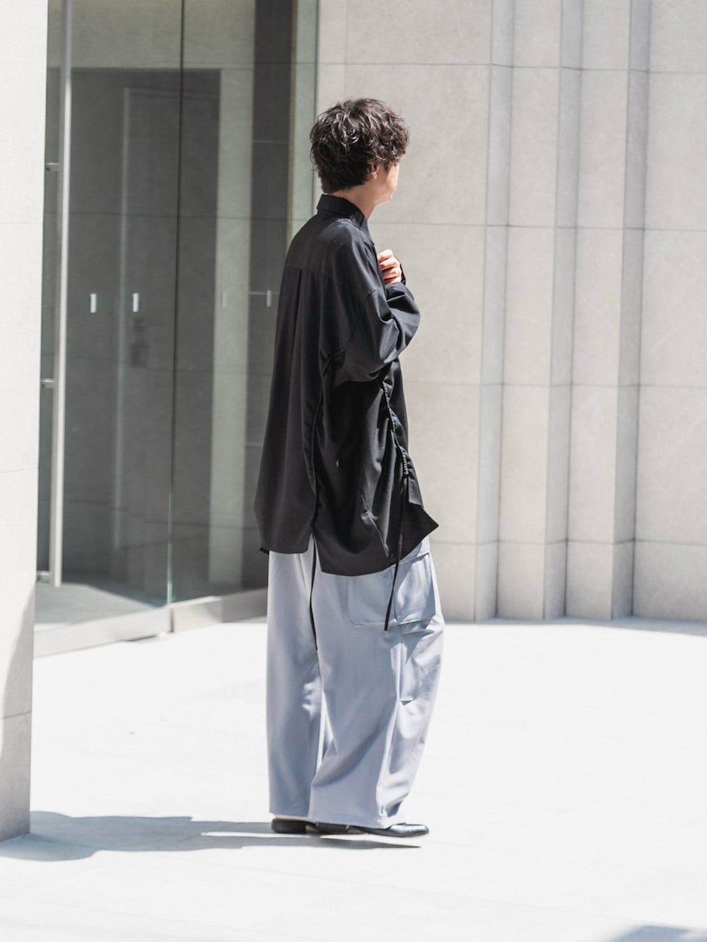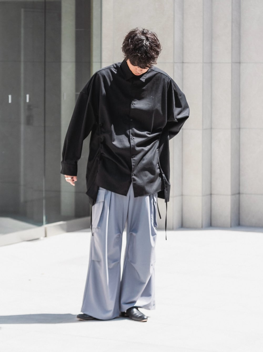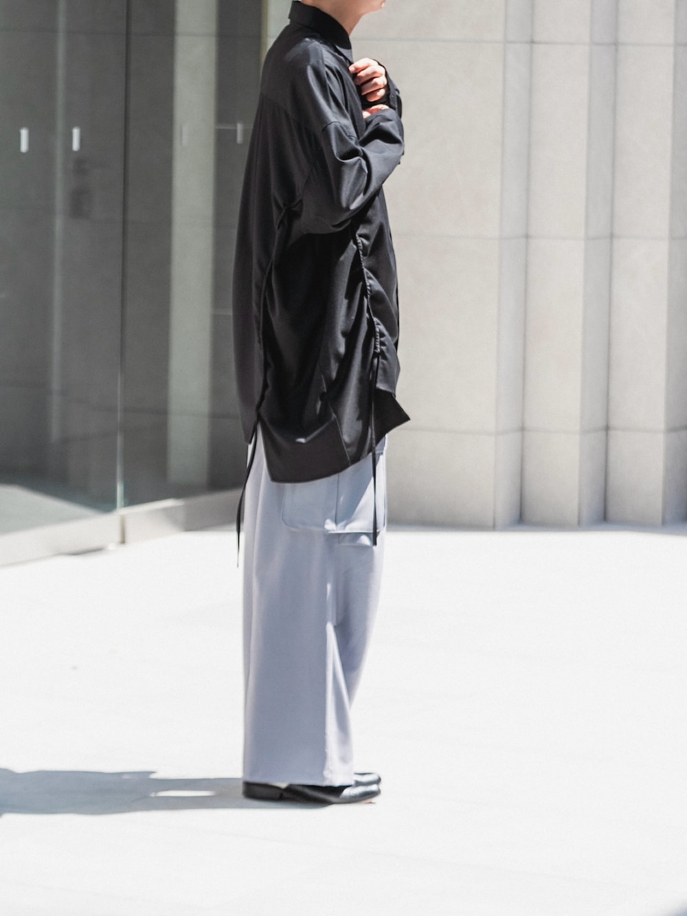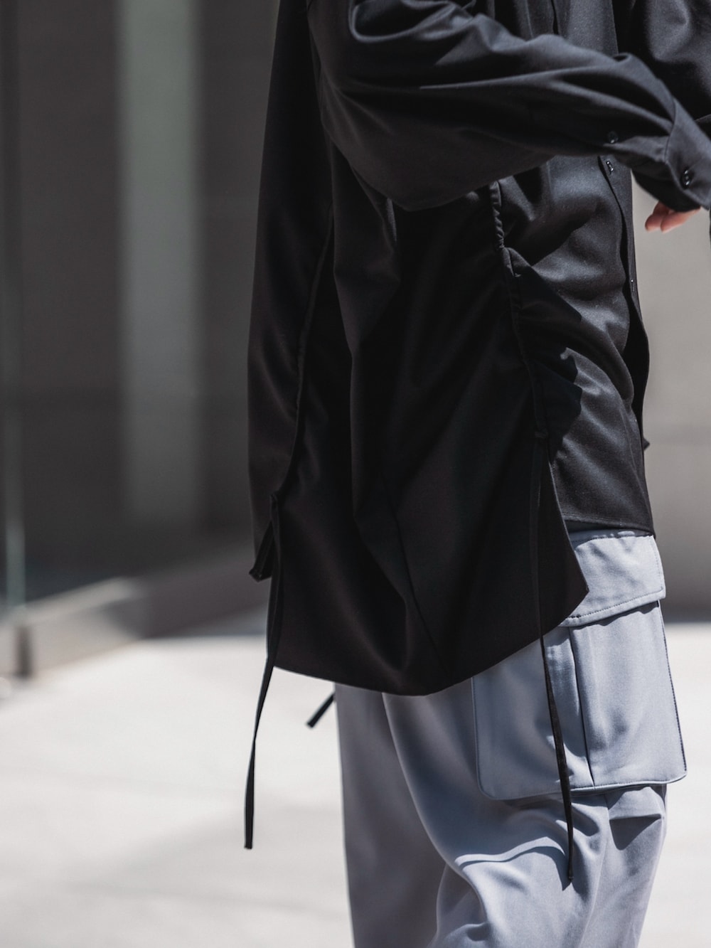 今回企画させていただいたドローコードシャツは前後に入れたドローコードが新鮮です