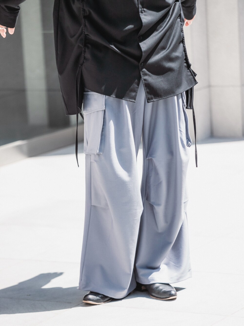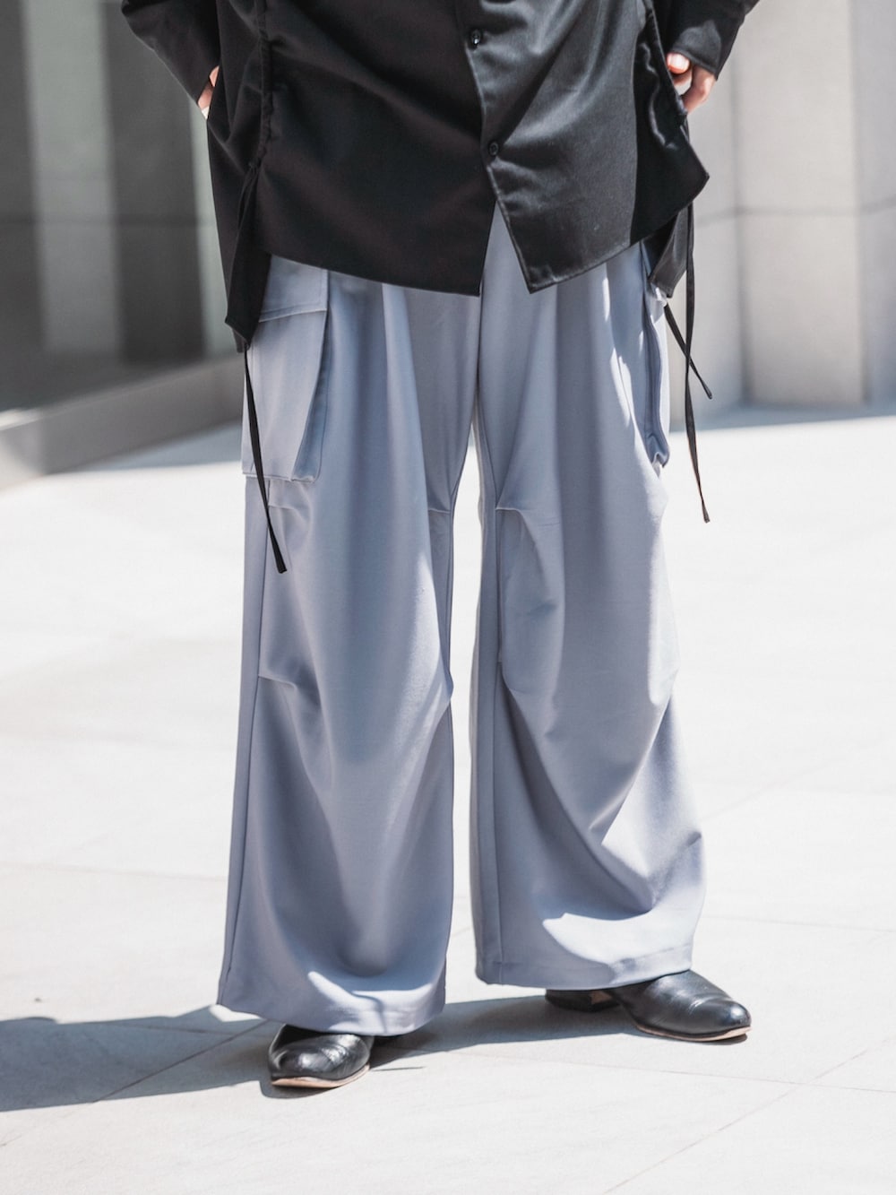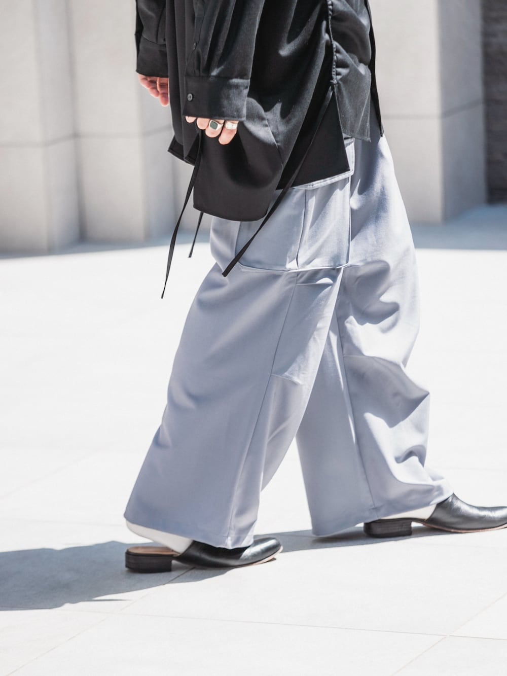 パンツはスラックスで使用するような生地のため綺麗目に合わせて見せるのもおすすめですよ◎