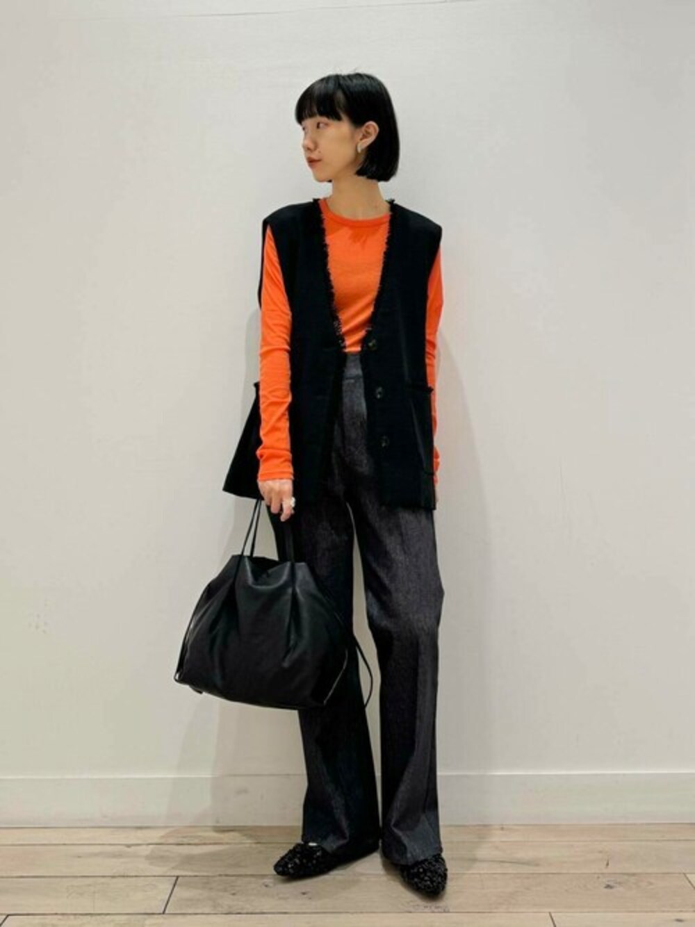 ツイードベストとスパンコールミュールで季節感もいれました^ ^