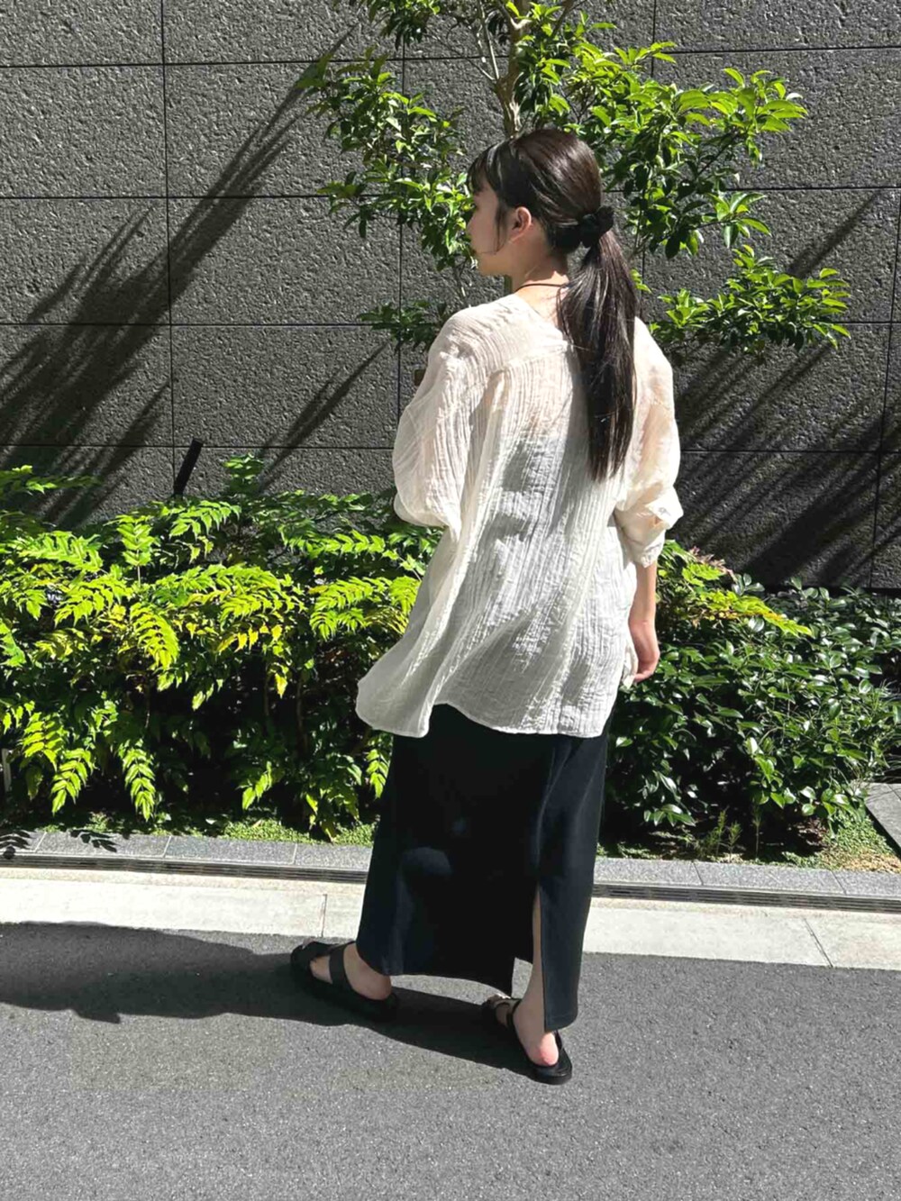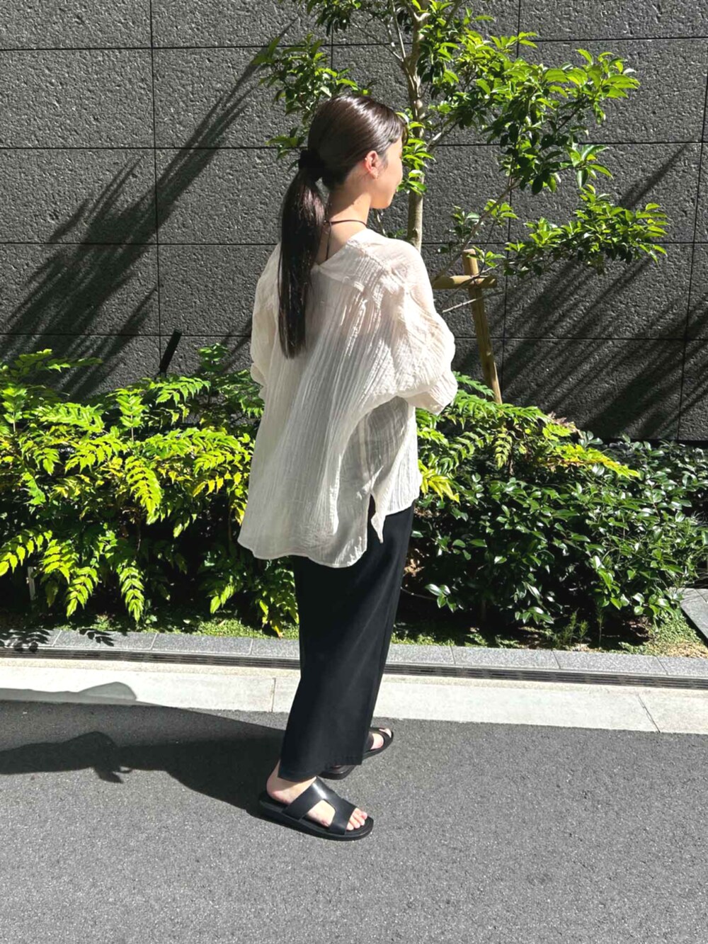 程よくシアー感のあるブラウスは、