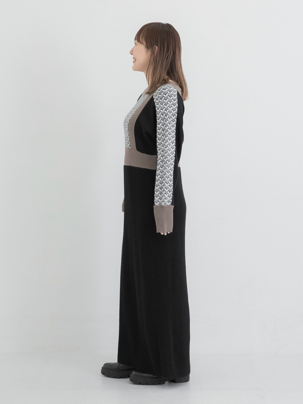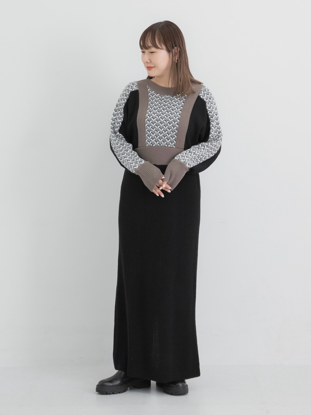 ニットワンピースでも野暮ったく見えません◎