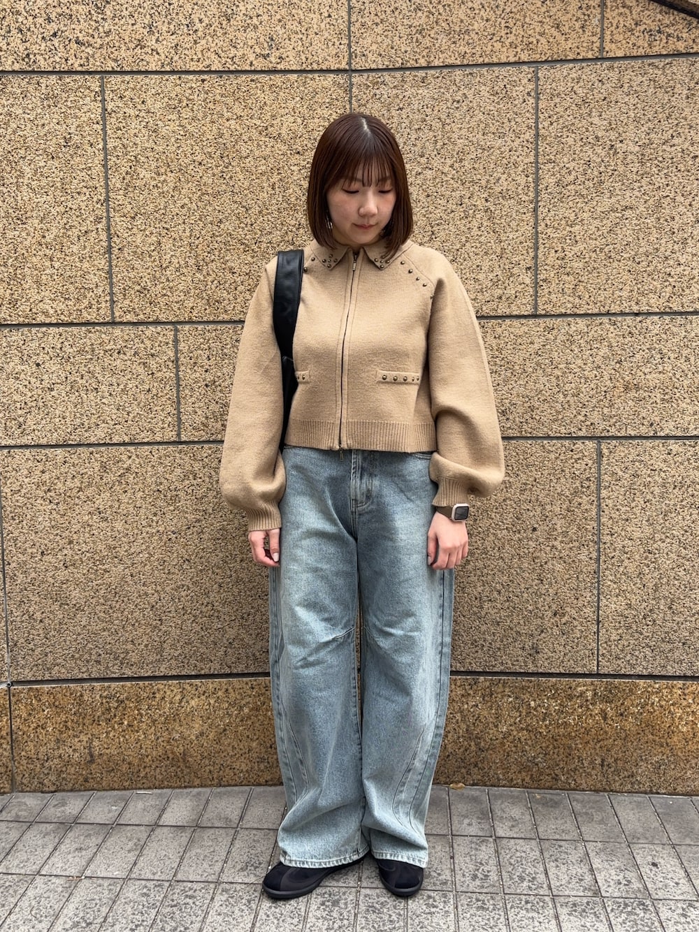 少しかっこいいめなブルゾンとスパンコールのキャミワンピースを組み合わせることで、大人っぽくおしゃれに☺️!