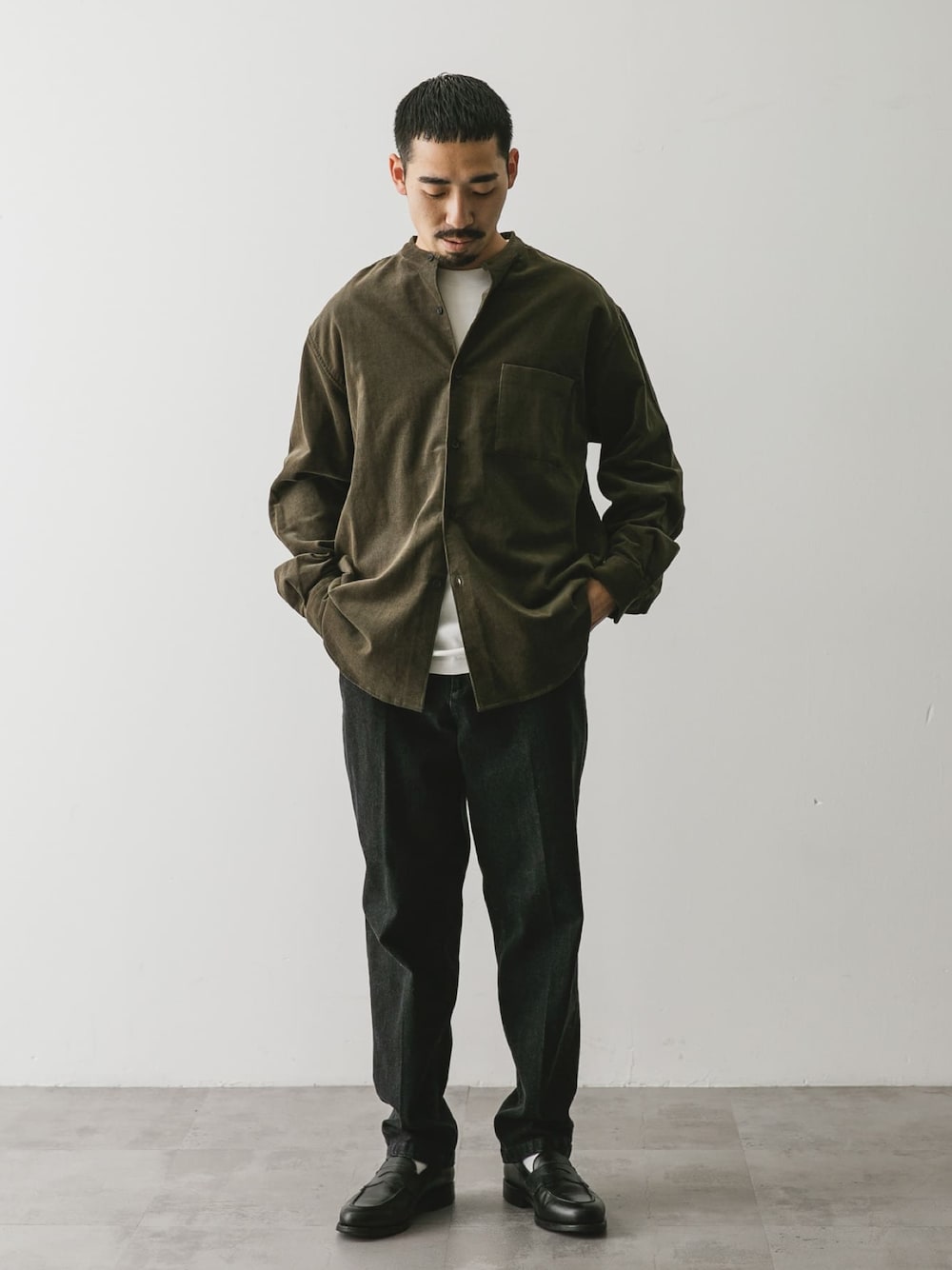 #バンドカラーシャツ