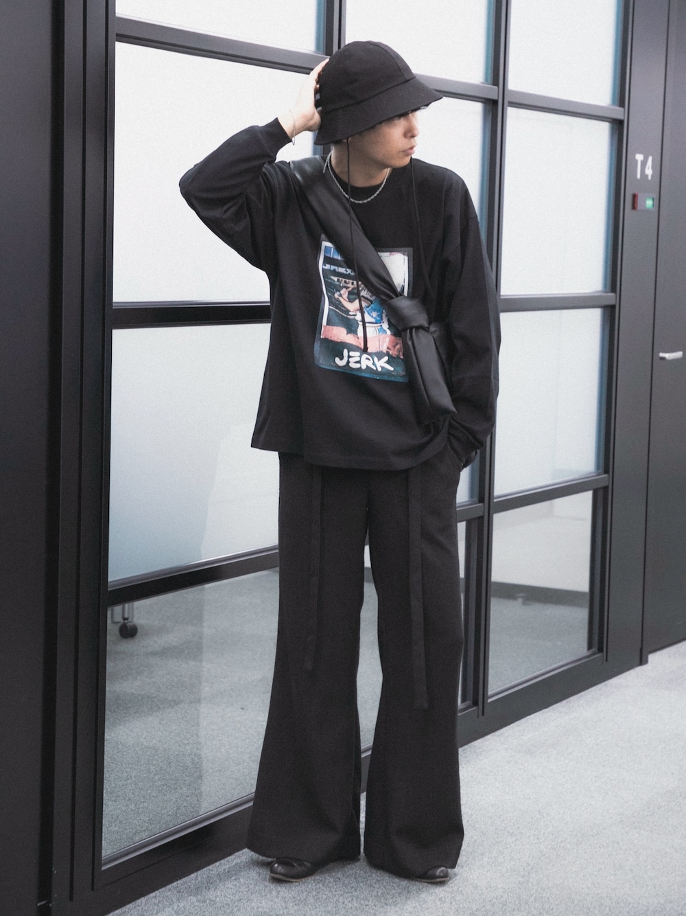 バスキアロンTにスラックスを合わせたブラックコーデ🐦⬛