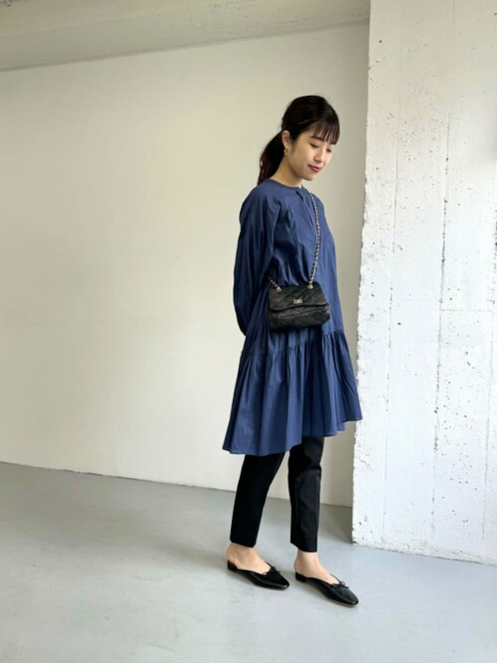 裾フリルが印象的な、チュニック風のミニ丈ワンピースを着用しました♪