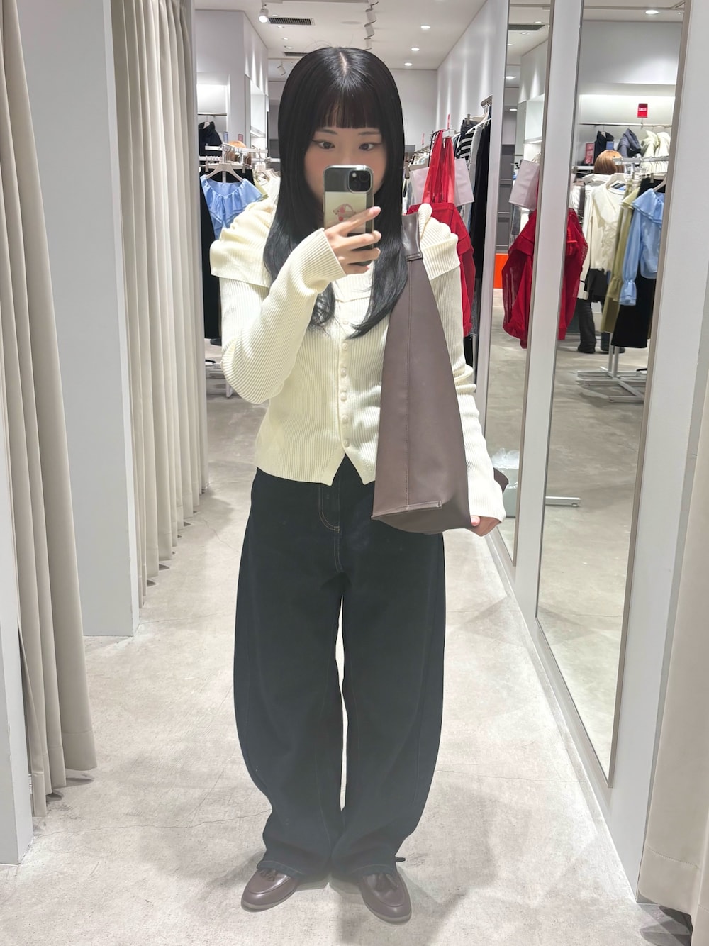 カーディガンは、シンプルですが首周りやウエスト周りもスッキリ見えるデザインになってるのでスタイルが良く見えます◎