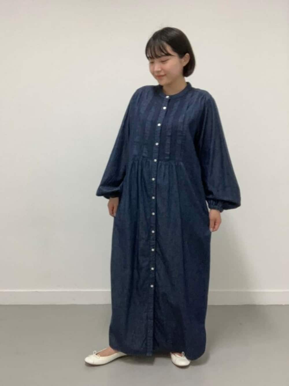 胸元の細かいピンタックがポイントになり、カジュアルな雰囲気の中にも大人の上品さを感じるデザインが魅力の一着です。
