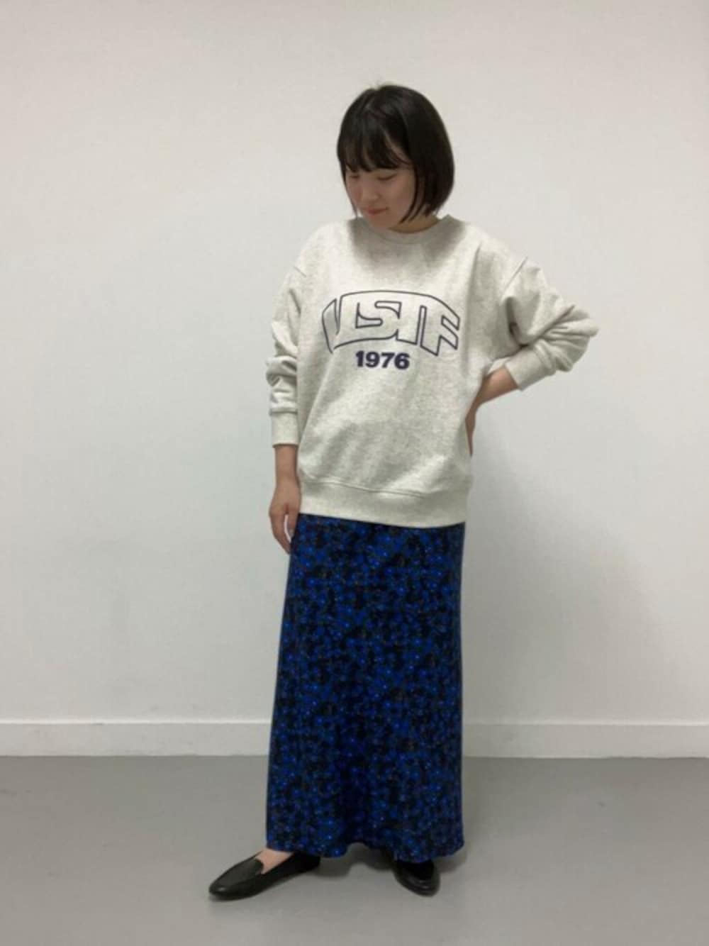 花柄スカートもカジュアルなスウェットと合わせると挑戦しやすいです◎
