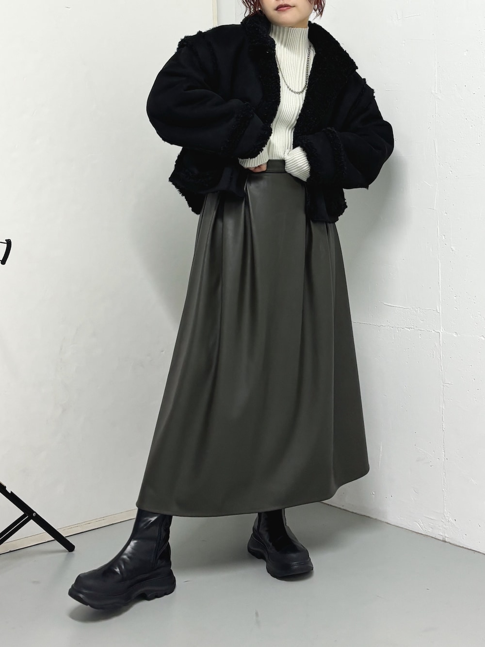 レザースカートとあわせて