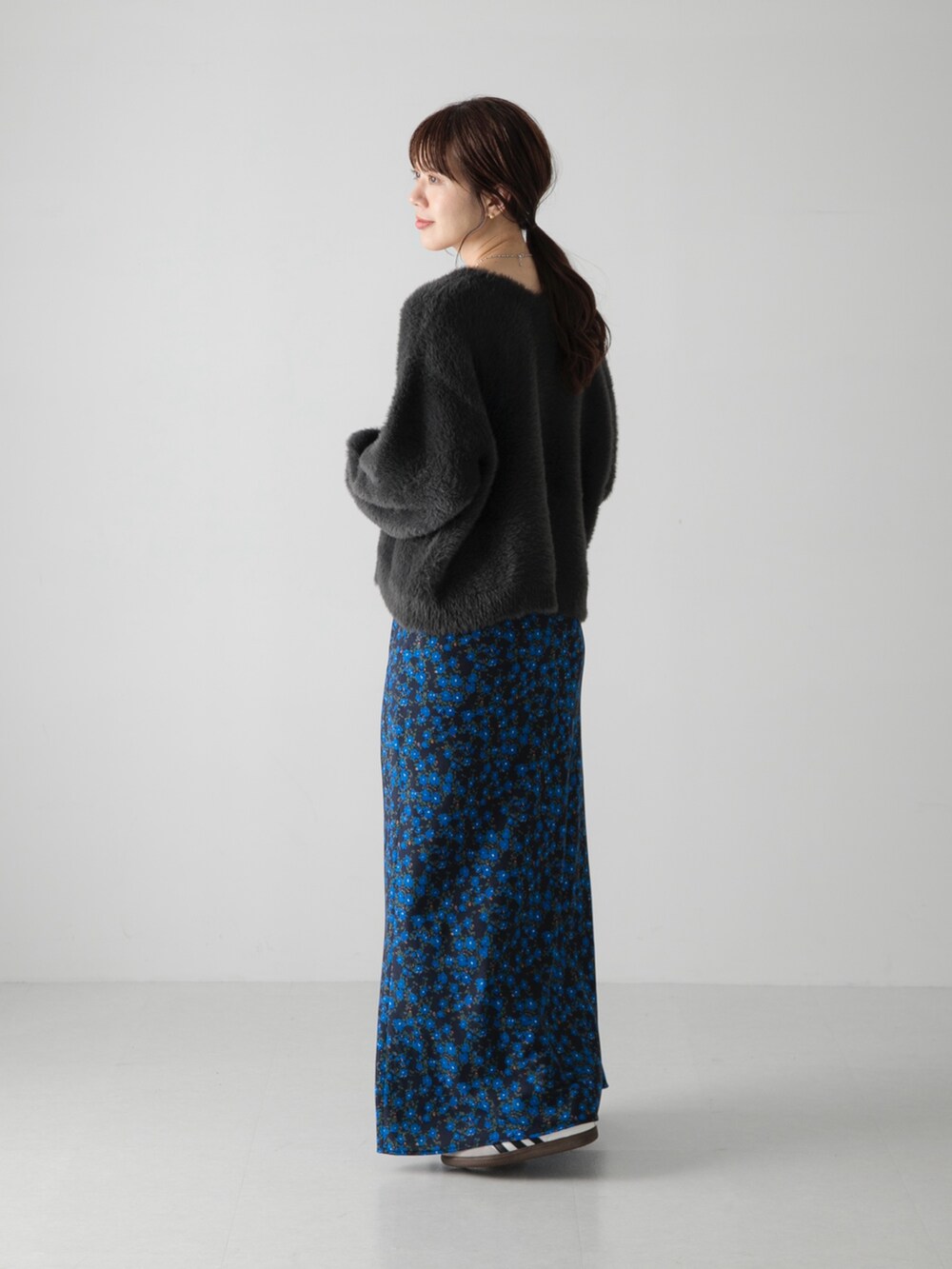 小花柄のロングスカートを合わせた女子っぽコーデ🌼
