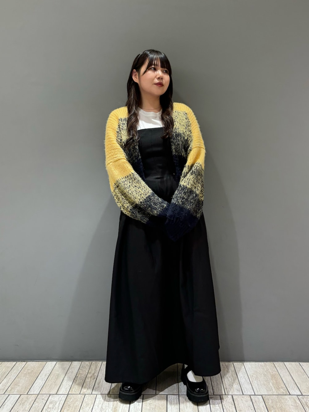 着るだけでスタイルアップが叶うジャンパースカートは、シルエットが綺麗で個人的おすすめアイテムとなっております👌🏻フロントにタックが入っている&後ろがバッククロスになっていることで自然とシルエットを綺麗に見せてくれます!後ろがボタンで長さを調節できるので、153cmの私は1番短くして着ています!シアートップスや薄手のニットなどコンパクトなトップスと合わせでレディライクに着こなすのがおすすめです🙂