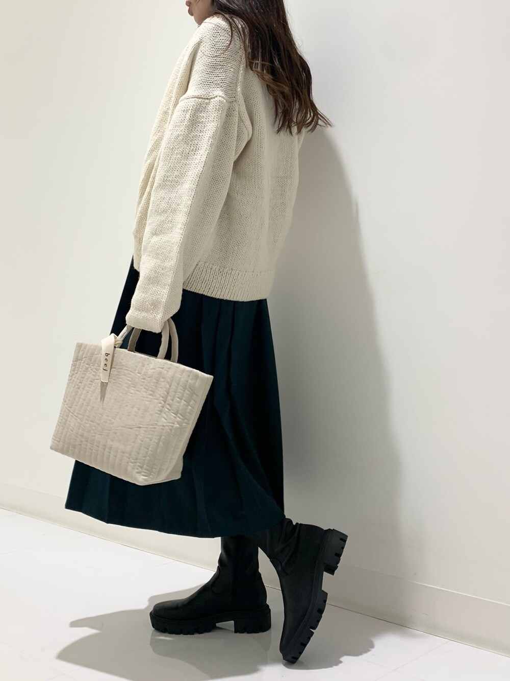 カジュアルな雰囲気にしてくれるキルティングトートは大きすぎなくてちょうど良いサイズ感でした。