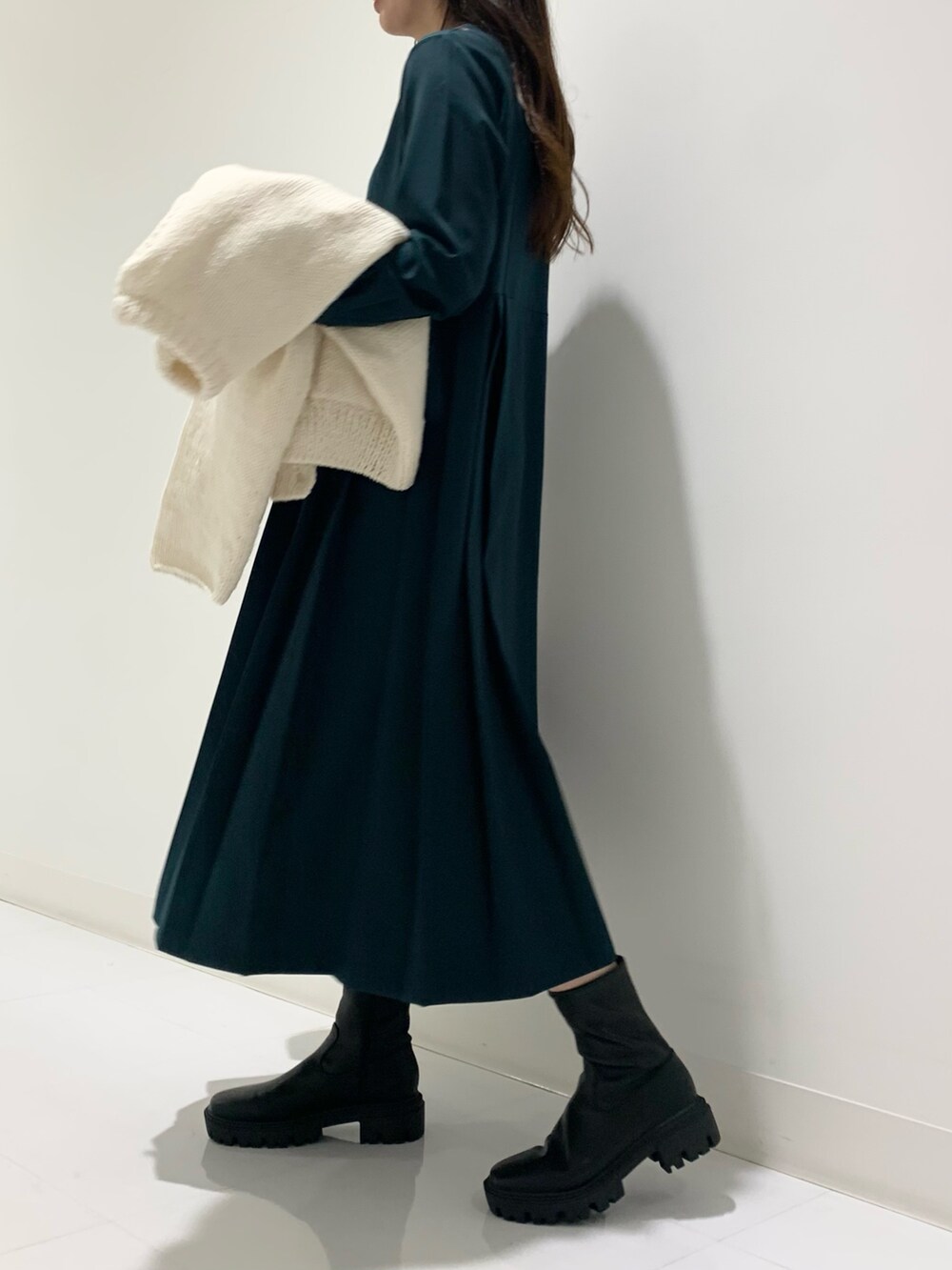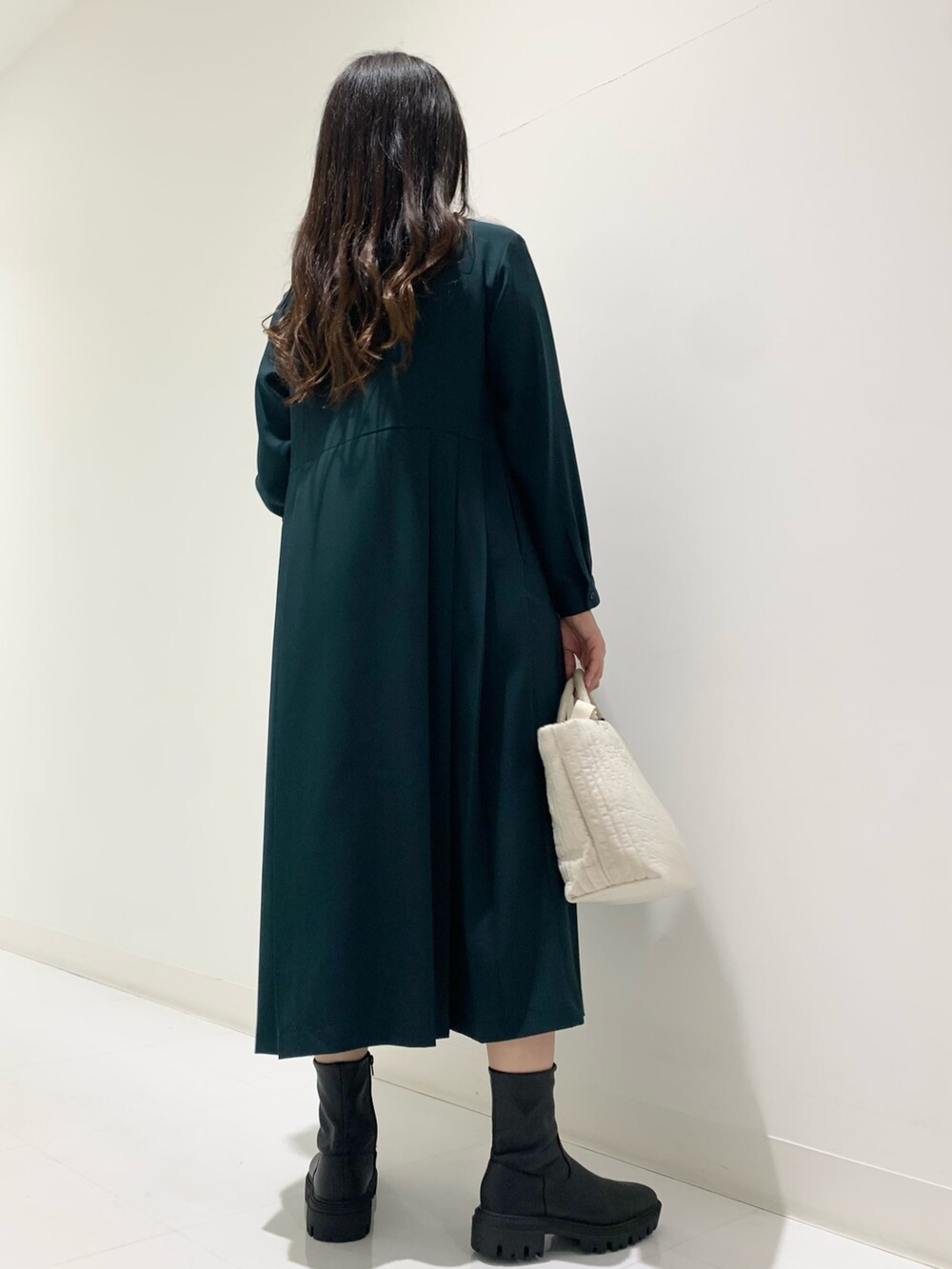 165㎝でMサイズを着用しています。丈はきれいめな丈感で個人的にはロング丈が好きなので少し短いかな?と思いましたがブーツを合わせるとちょうどよいと感じました◎