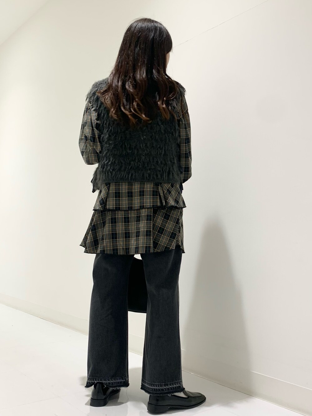 私は丈が短めなスカートやワンピースをあまり着ないので、今回デニムのパンツを合わせ甘さを抑えてカジュアルに着こなしてみました!