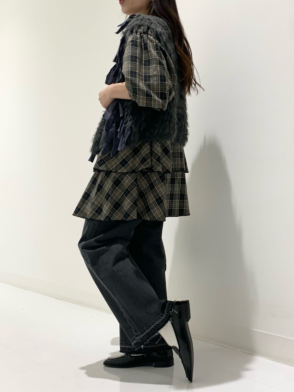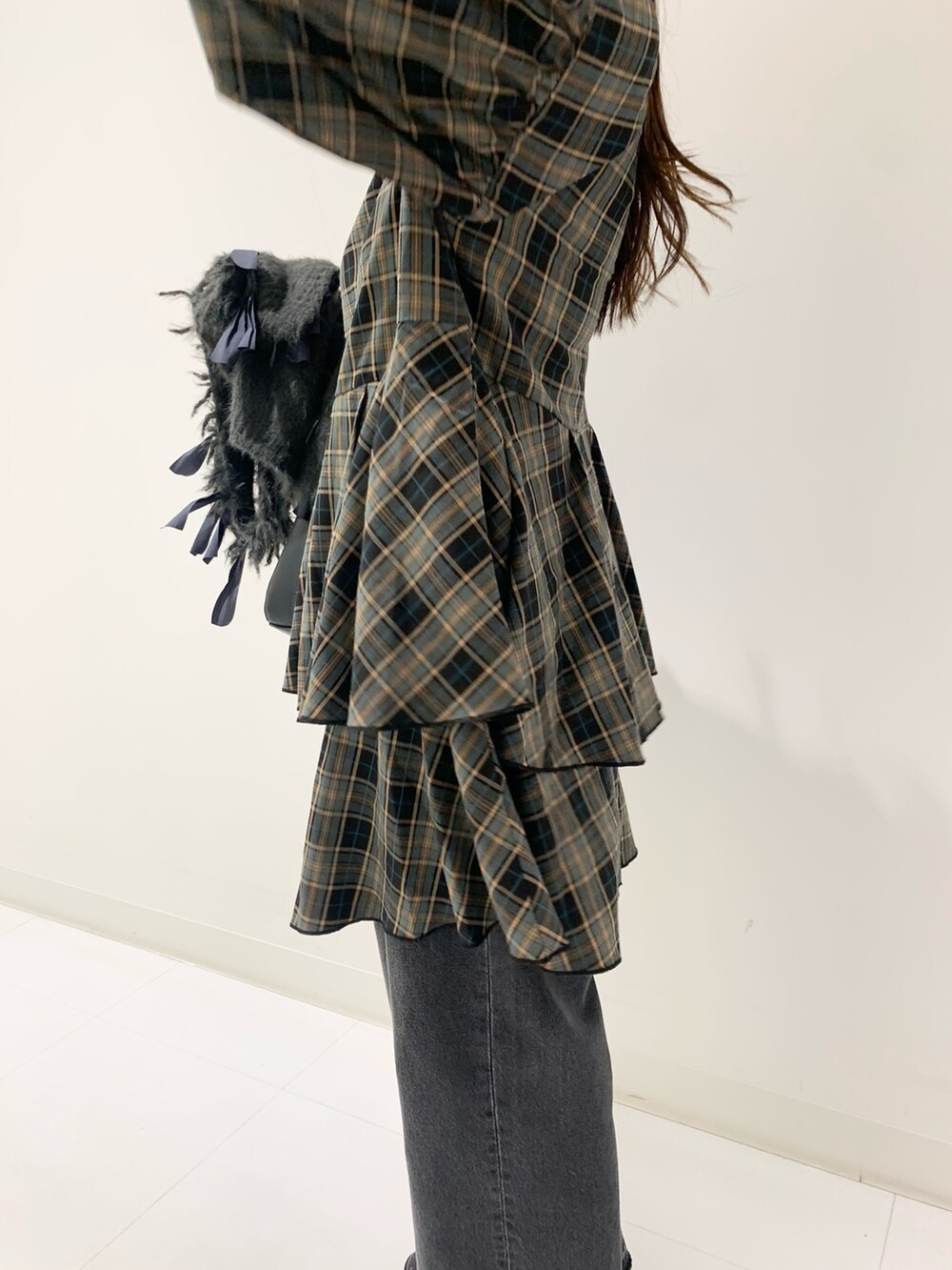 ティアードデザインが可愛い雰囲気の秋らしいチェックワンピースです◎