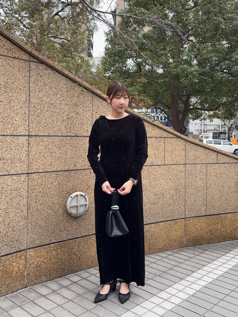 オールブラックで大人っぽく足元はスニーカーで少しカジュアルにまとめたコーデです!