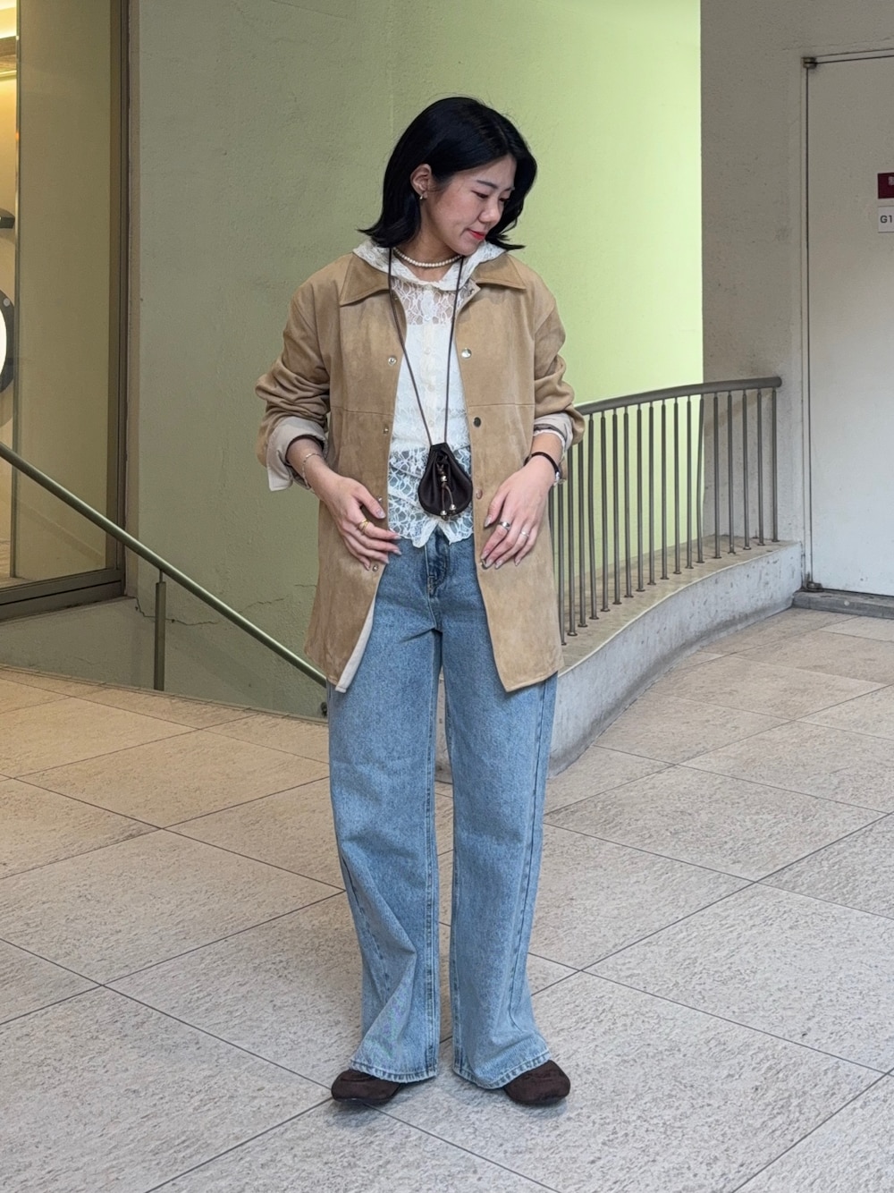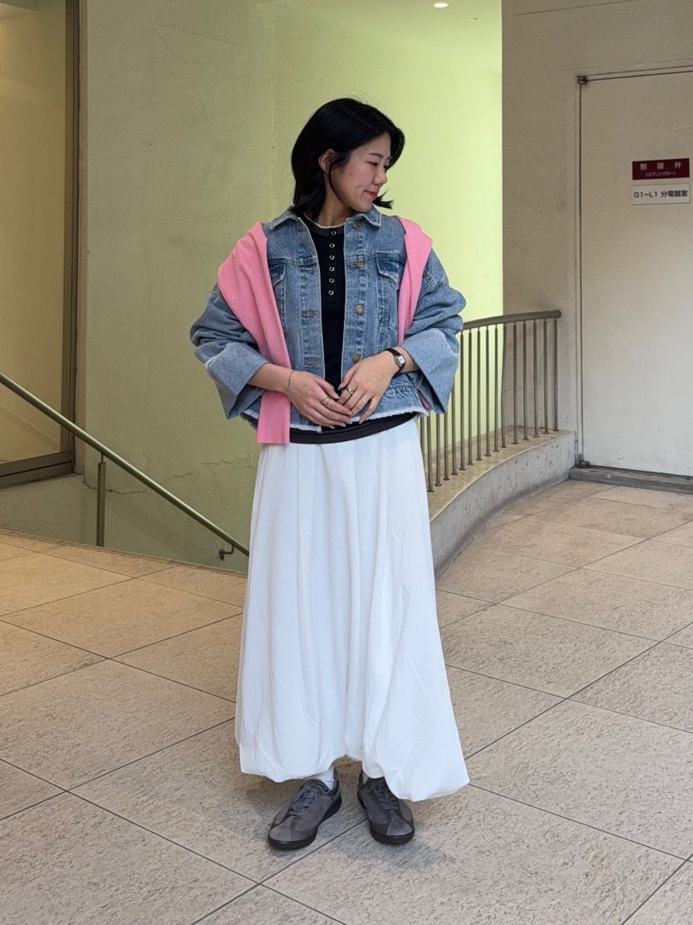 パンツは長めのデザインでセンタープレスが入っているので足がまっすぐ見えてスタイルもよく見えます!