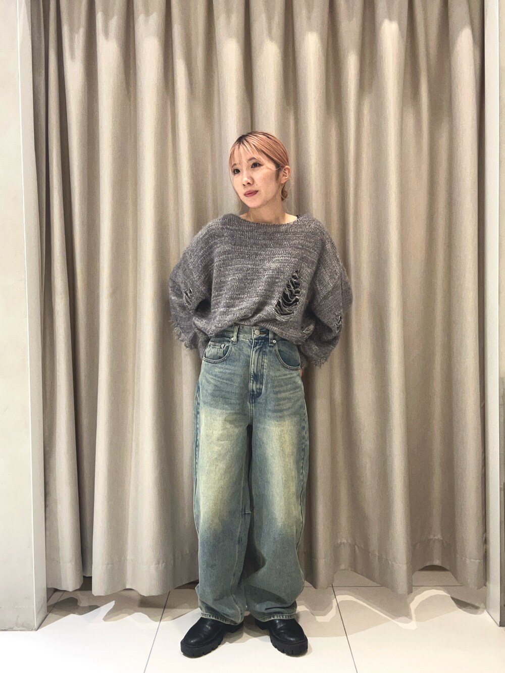 ニットは、横幅も広いデザインでインをせずに出してスカートと合わせてもバランスよく着ていただけます♪♪