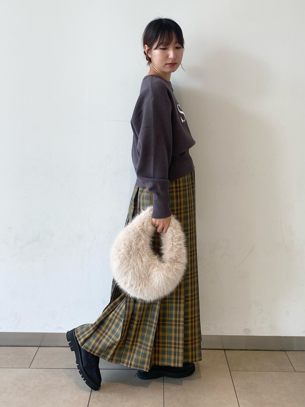 チェックのスカートはプリーツ大きめで生地もしっかり◎