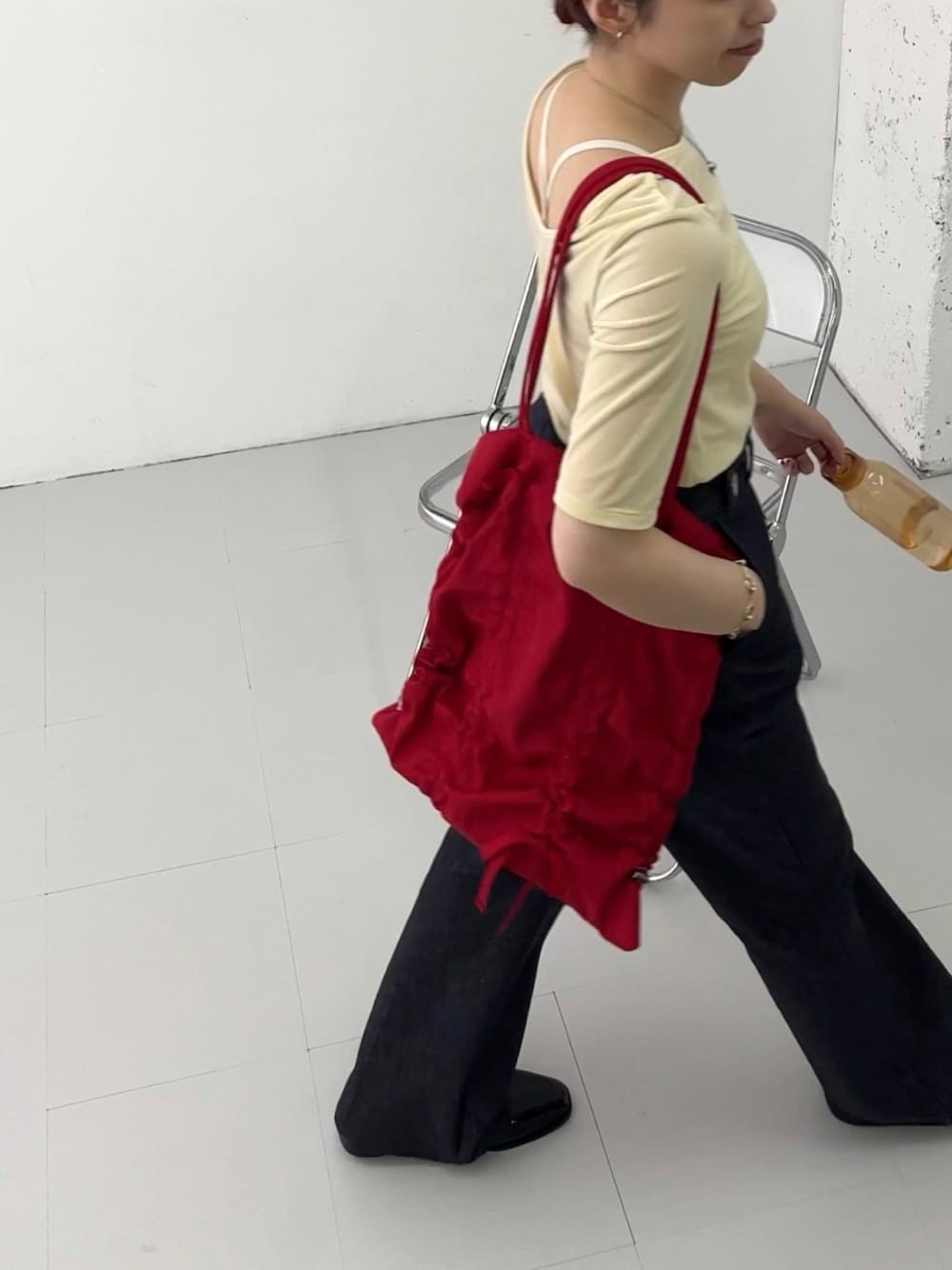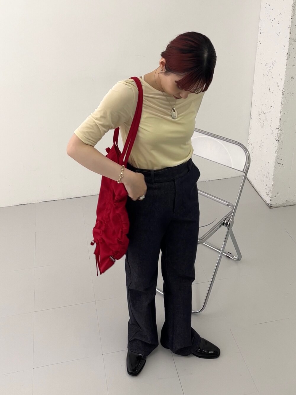 トレンドの赤色バッグを主役にしたコーディネート🧳