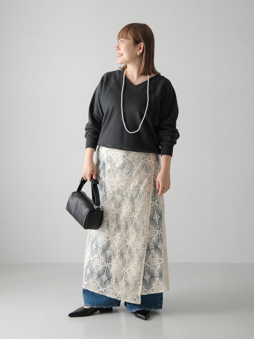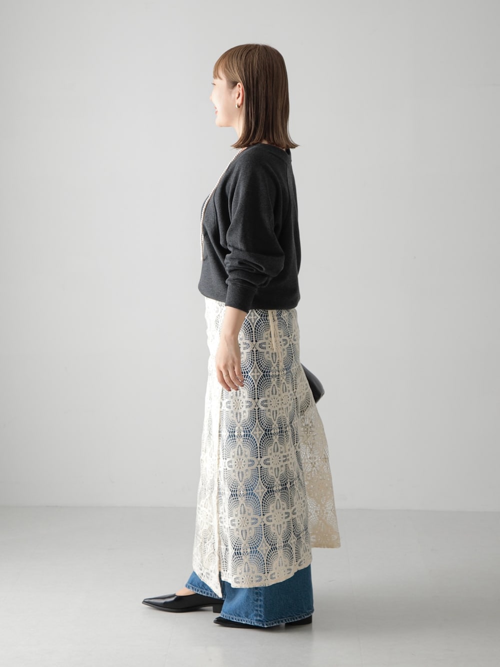 カジュアルな分レーススカートを合わせて女子感をプラス◎