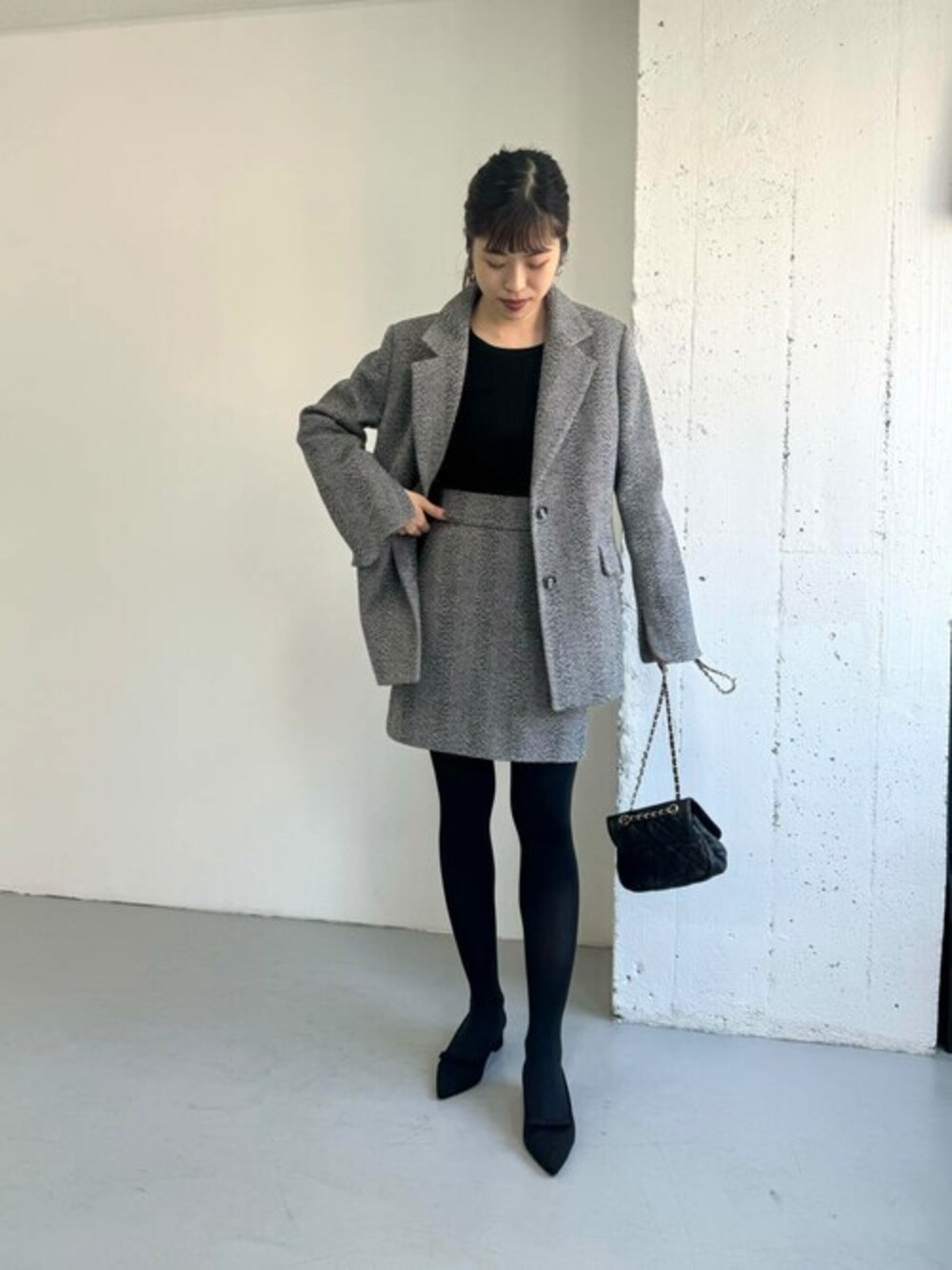 ウールブレンド素材を使用しているので、タイツやニットと合わせれば