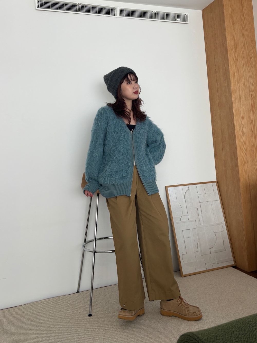 ブルーを引き立たせるコーデ、他はベージュでまとめて◎