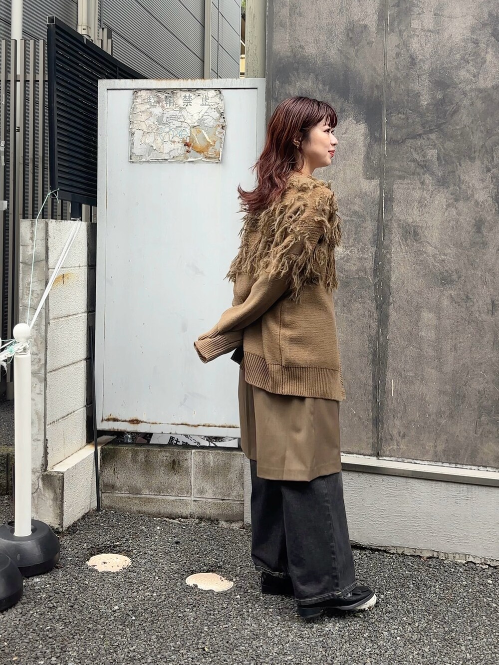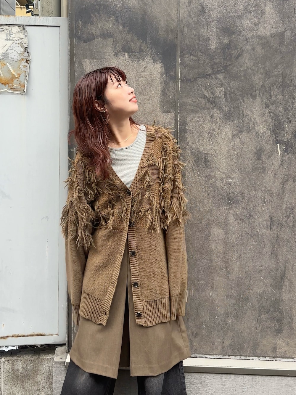 色合いが可愛いカーディガンを、パンツレイヤードでトレンディに🥜