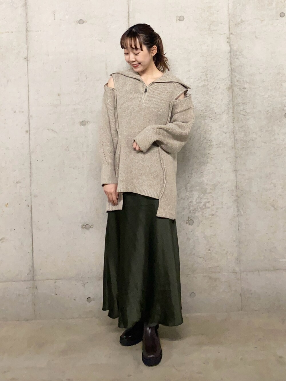 トップスのニットはショルダージップがとにかくあざとかわいいんです...🥹❤️