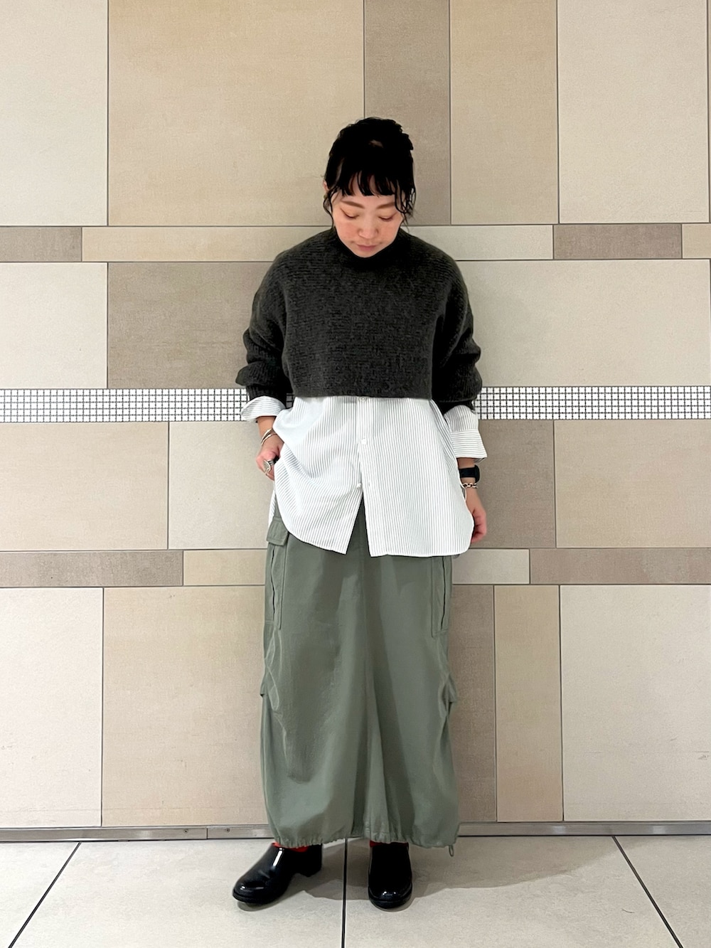 もちろんハイウェストなボトムスに1枚で着て、さらにトレンド感満載に。
