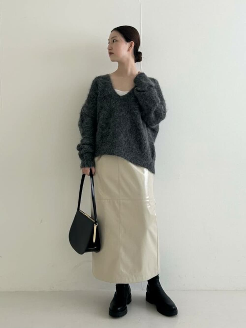深めのVネックとコクーンシルエットが抜け感を出してくれます◎