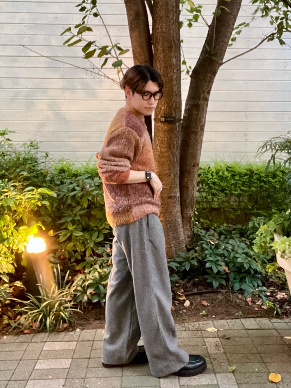 ニットはグラデーションになっていてとても可愛く、ブークレ素材で暖かくて着心地もいいので着回し力 抜群なアイテムになっています✨️